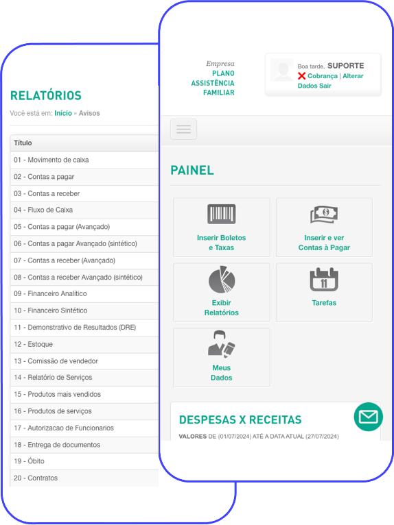 O operador do sistema poderá configurar as mensagens, a data e os meios de envio de mensagens (WhatsApp, SMS e e-mail), e o sistema cuida sozinho de fazer as cobranças e os lembretes de mensalidades.